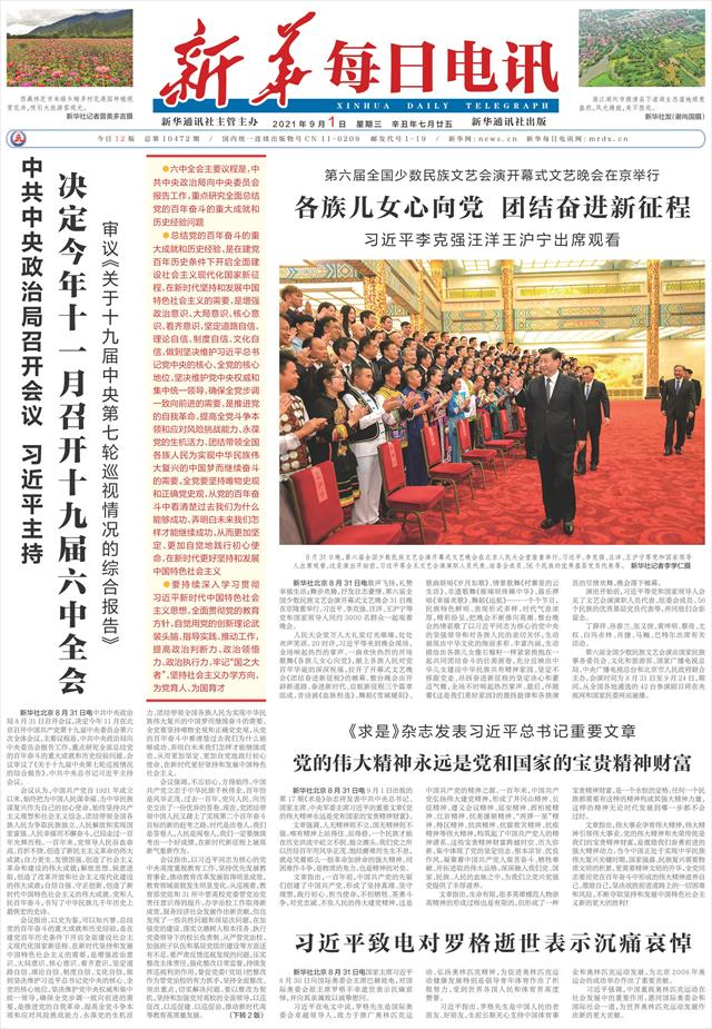 | ( 2021-09-01 ) 稿件来源:新华每日电讯 要 闻 |