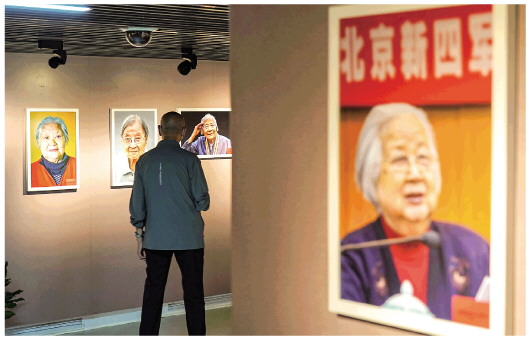 8月1日,参观者在参观老兵肖像作品。当日,“抗战老兵记忆——百幅抗战老兵肖像作品捐赠仪式暨展示活动”在中国人民抗日战争纪念馆举行。据介绍,此次展示的抗战老兵肖像作品共135幅,包括红军战士、东北抗日联军战士、八路军战士和新四军战士等老兵肖像作品。