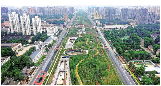幸福林带也在这不经意间来到了他们身边。2017年,林带正式启动主体建设,今年7月1日,地上景观绿化和地下商业首开段对外开放。