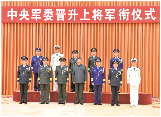 新华社北京9月6日电(记者梅常伟)中央军委晋升上将军衔仪式9月6日在北京八一大楼隆重举行。中央军委主席习近平向晋升上将军衔的军官颁发命令状。