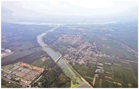 流入大汶河的海子河(9月2日摄,无人机照片)。新华社记者刘诗平摄