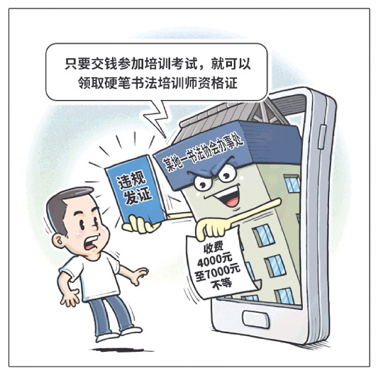 不久前,有群众在国务院“互联网+督查”平台反映,有自称“中国硬笔书法协会天津办事处工委”的机构,在网上发布招生简章和广告,组织开展硬笔书法等级考试并以中国硬笔书法协会名义颁发“硬笔书法培训师资格证书”及其他证书,收费从几百元至几千元不等。