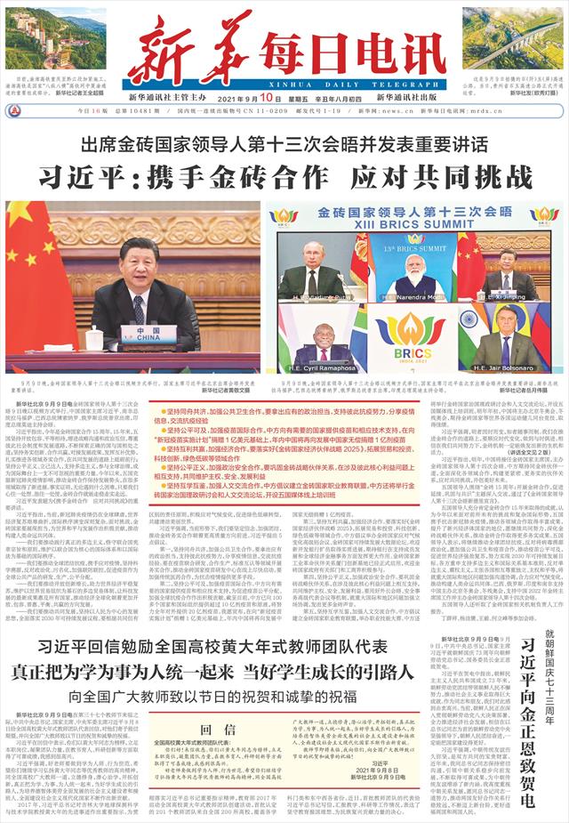 | ( 2021-09-10 ) 稿件来源:新华每日电讯 要 闻 |