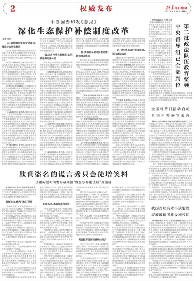 | ( 2021-09-13 ) 稿件来源:新华每日电讯 权威发布 |