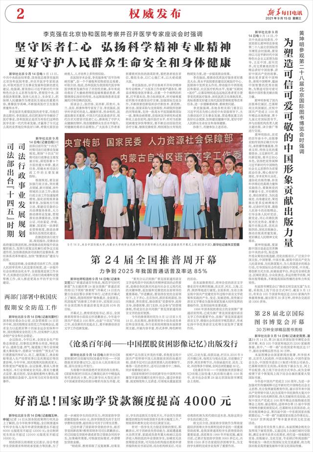| ( 2021-09-15 ) 稿件来源:新华每日电讯 权威发布 |