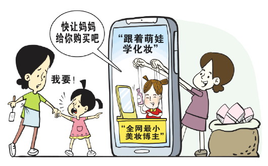 近来,在一些网络社交平台上,出现一批打着“全网最小美妆博主”“跟着萌娃学化妆”等噱头的少儿“网红”,他们教化妆、试产品、直播带货,用孩子的面孔,说着大人的话。