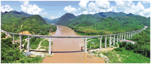 这是2020年7月24日在老挝拍摄的中老铁路班纳汉湄公河特大桥。中老铁路是中国“一带一路”倡议与老挝“变陆锁国为陆联国”战略对接项目。