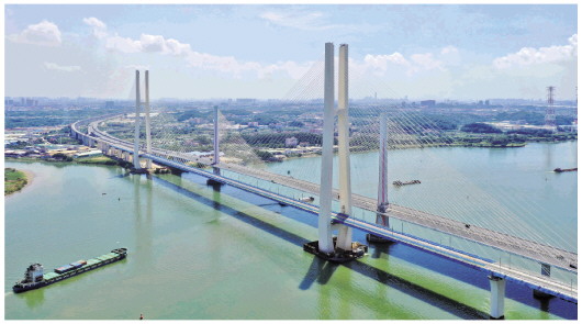 完成左线铺轨的广州南沙港铁路跨西江特大斜拉桥(9月15日摄)。近日,由中铁十一局承建的粤港澳大湾区基础设施“硬联通”重点工程——广州南沙港铁路跨西江特大斜拉桥完成桥面左线铺轨施工,为工程如期建成开通奠定基础。该桥位于广东佛山市和江门市交界处,全长1117.5米。 新华社记者刘大伟摄