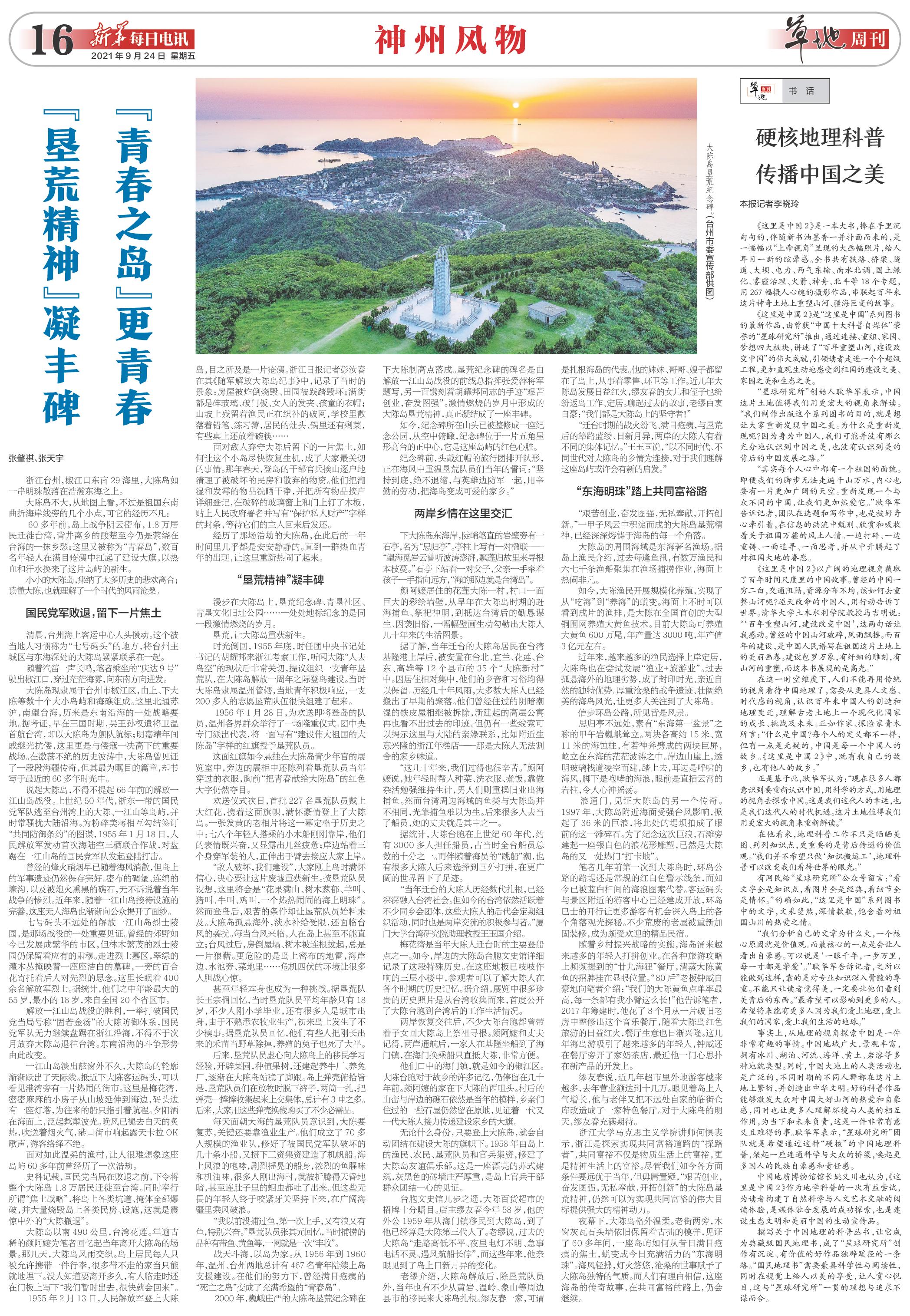 “艰苦创业,奋发图强,无私奉献,开拓创新。”一甲子风云中积淀而成的大陈岛垦荒精神,已经深深熔铸于海岛的每一个角落。