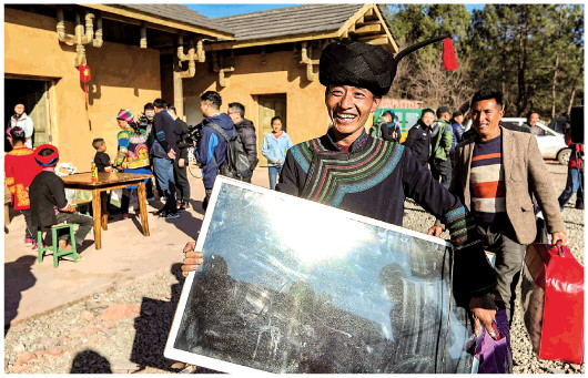 在四川省昭觉县三河村的易地扶贫安置点,彝族群众马海日聪喜搬新居(2019年2月11日摄)。