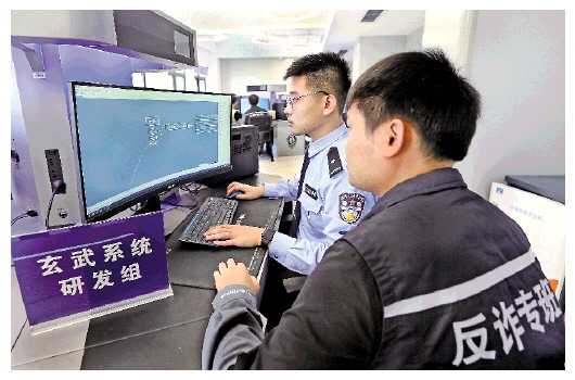 9月24日,反诈专班民警在“联合实验室”研判案情。当日,由上海市公安局长宁分局联合8家互联网企业组建的“长宁打击治理新型网络犯罪玄武联合实验室”在长宁分局揭牌。这也是全市首家由地区公安分局牵头组建,汇聚专业技术资源,针对新型犯罪预警防范和打击治理的深层次合作平台。近年来电信网络诈骗给人民群众的财产安全带来了巨大威胁,长宁分局坚持“打防管控”各项措施,力争从源头上遏制电信网络诈骗犯罪多发高发态势,构建“全民反诈、全警反诈、智慧反诈”新格局。据了解,今年以来,长宁区电信网络诈骗案件接报既遂数同比下降18.4%。 本报记者凡军摄