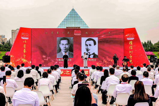 5月31日,在上海市龙华烈士纪念馆,电视剧《觉醒年代》演员在现场分享革命烈士陈延年、陈乔年的英雄事迹。
