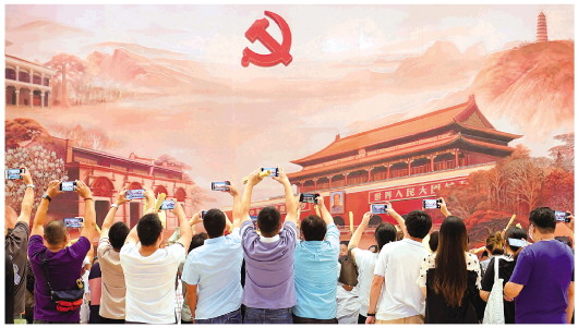 10月1日,人们在中共一大纪念馆内参观拍照。 新华社记者刘颖摄 |