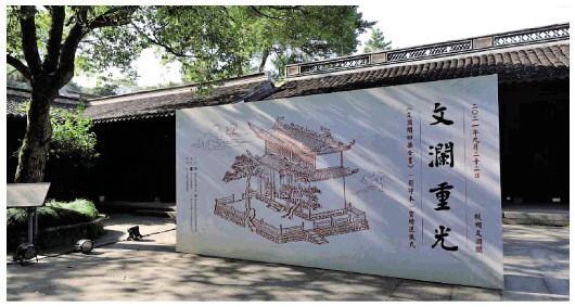 “文澜重光”——《文澜阁四库全书》(影印本)云赠送仪式杭州会场。 国际儒学联合会提供 |
