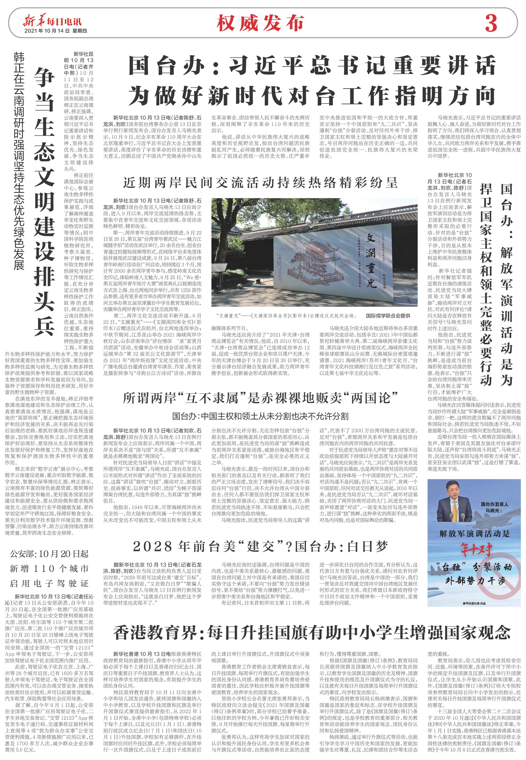 | ( 2021-10-14 ) 稿件来源:新华每日电讯 权威发布 |