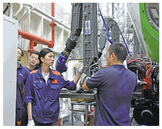 潜航员在对“奋斗者”号进行检修测试。本报记者陈凯姿摄 |