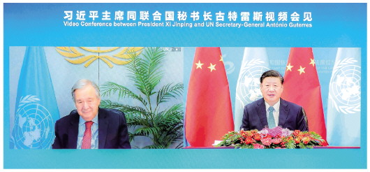 10月25日上午,国家主席习近平在北京人民大会堂以视频方式会见联合国秘书长古特雷斯。新华社记者翟健岚摄 |