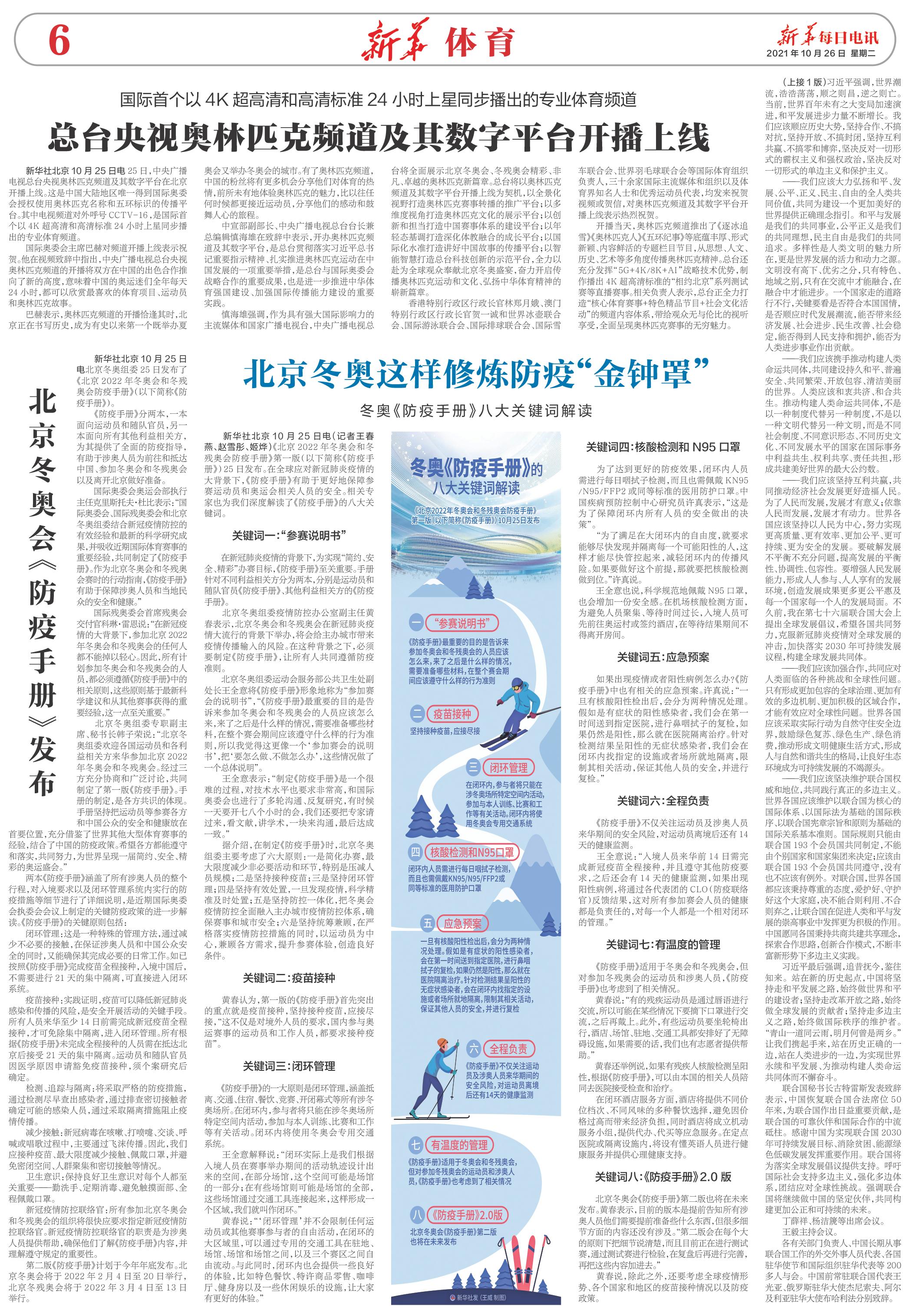 | ( 2021-10-26 ) 稿件来源:新华每日电讯 新华体育 |