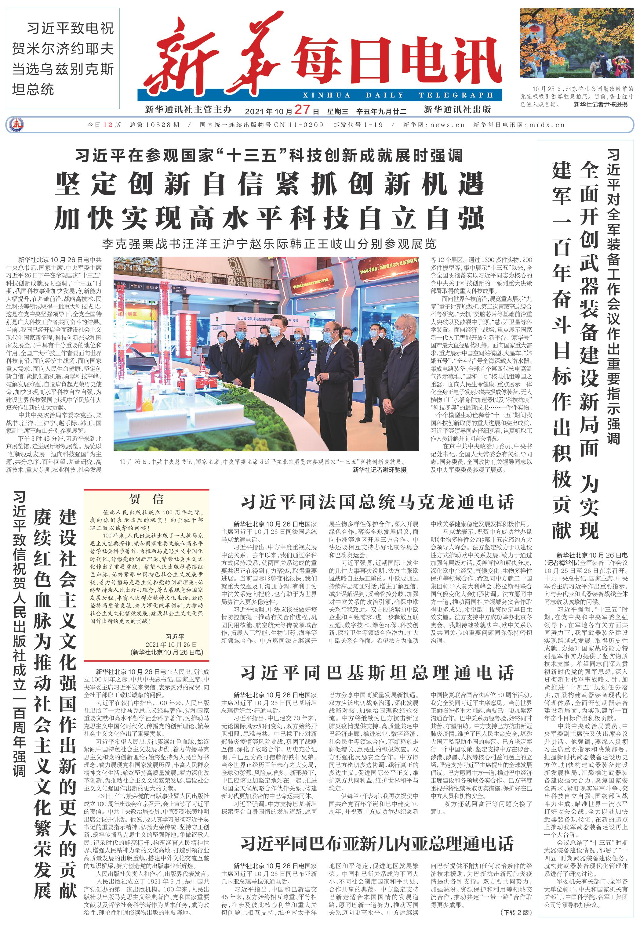 | ( 2021-10-27 ) 稿件来源:新华每日电讯 要 闻 |