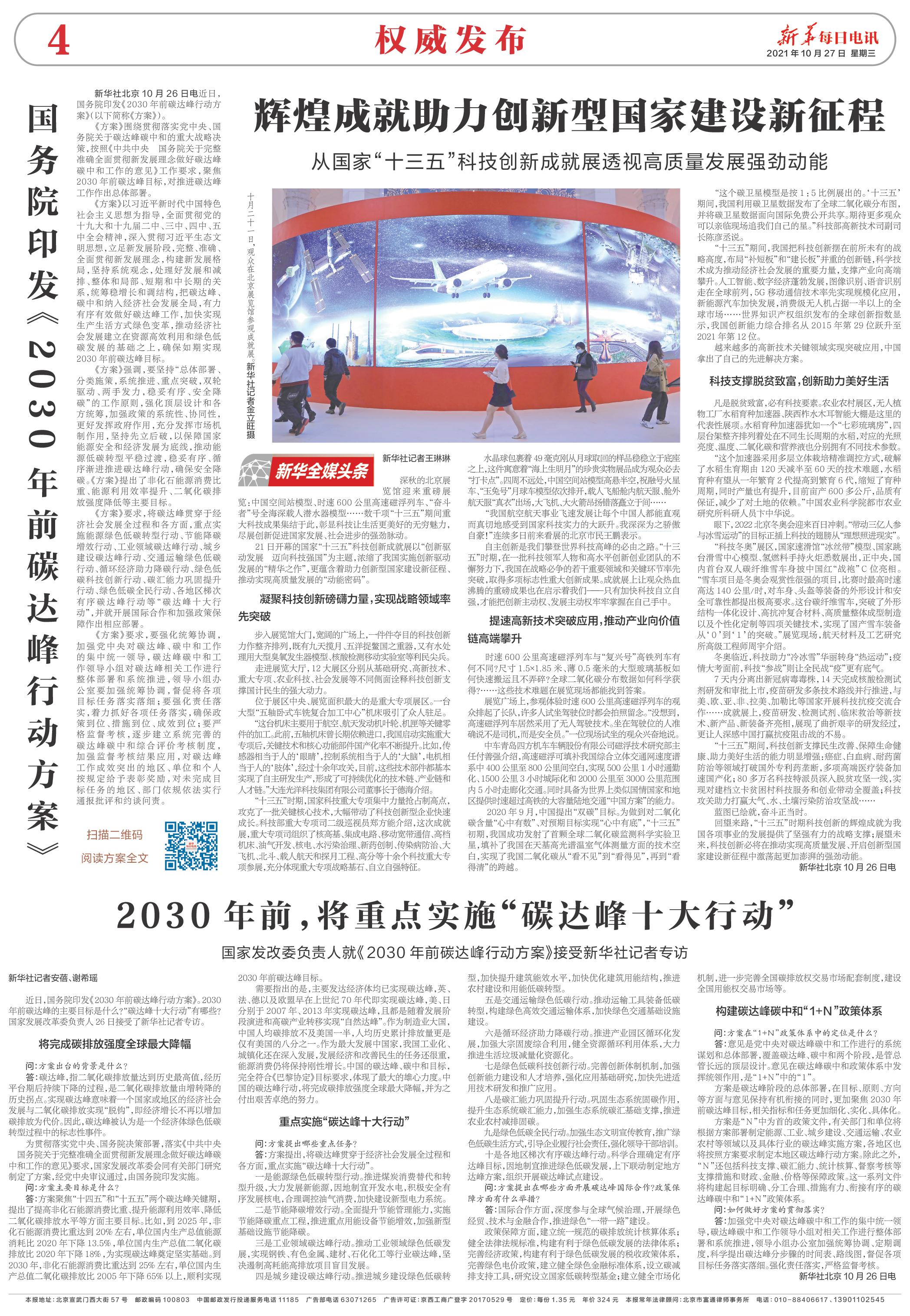 国家发改委负责人就《2030年前碳达峰行动方案》接受新华社记者专访 |