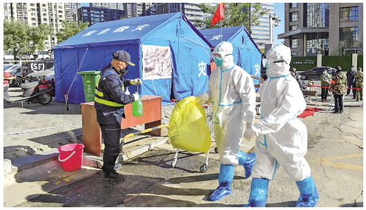 出现确诊病例的呼和浩特市华侨新村小区目前已经处于封控状态,街道办事处、物业公司等多个单位的工作人员正在全力保障居民的隔离生活。