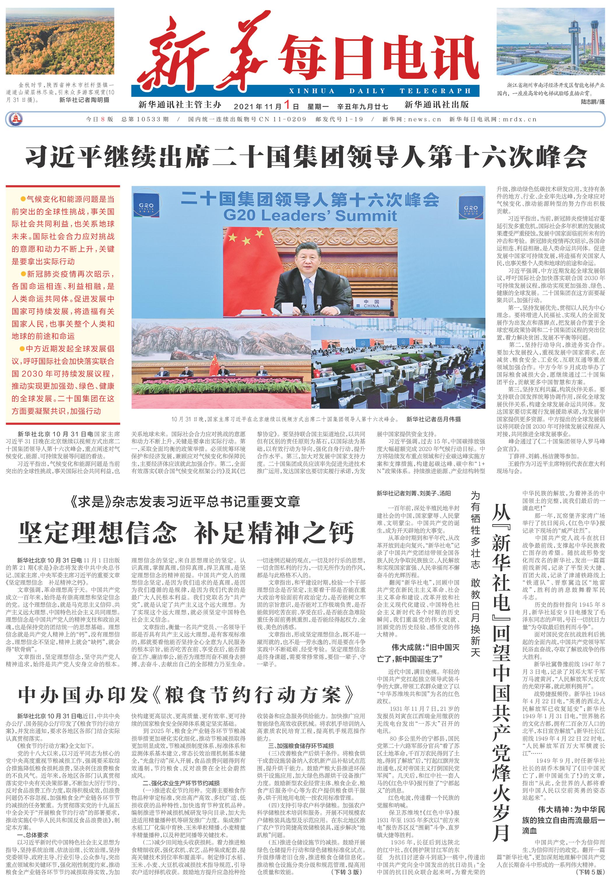 | ( 2021-11-01 ) 稿件来源:新华每日电讯 要 闻 |