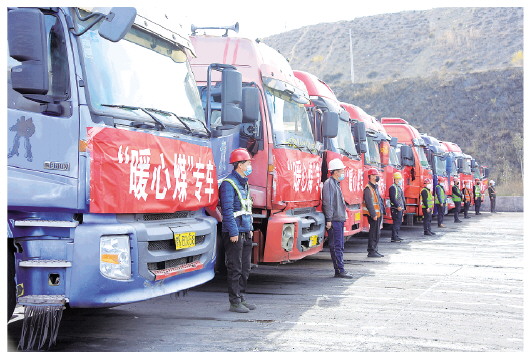 10月27日,在内蒙古达拉特旗昭君镇,为群众送“暖心煤”的车队准备出发。 新华社发(张小宁摄)