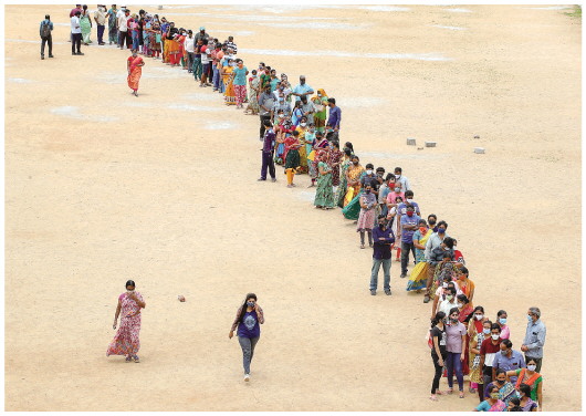 这是7月29日人们在印度海得拉巴排队接种新冠疫苗的资料照片。
