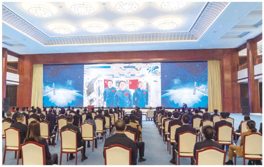 中央宣传部、中国载人航天工程空间站阶段飞行任务总指挥部、中国共产党历史展览馆负责同志,工程参研参试单位人员代表、航天员代表参加。