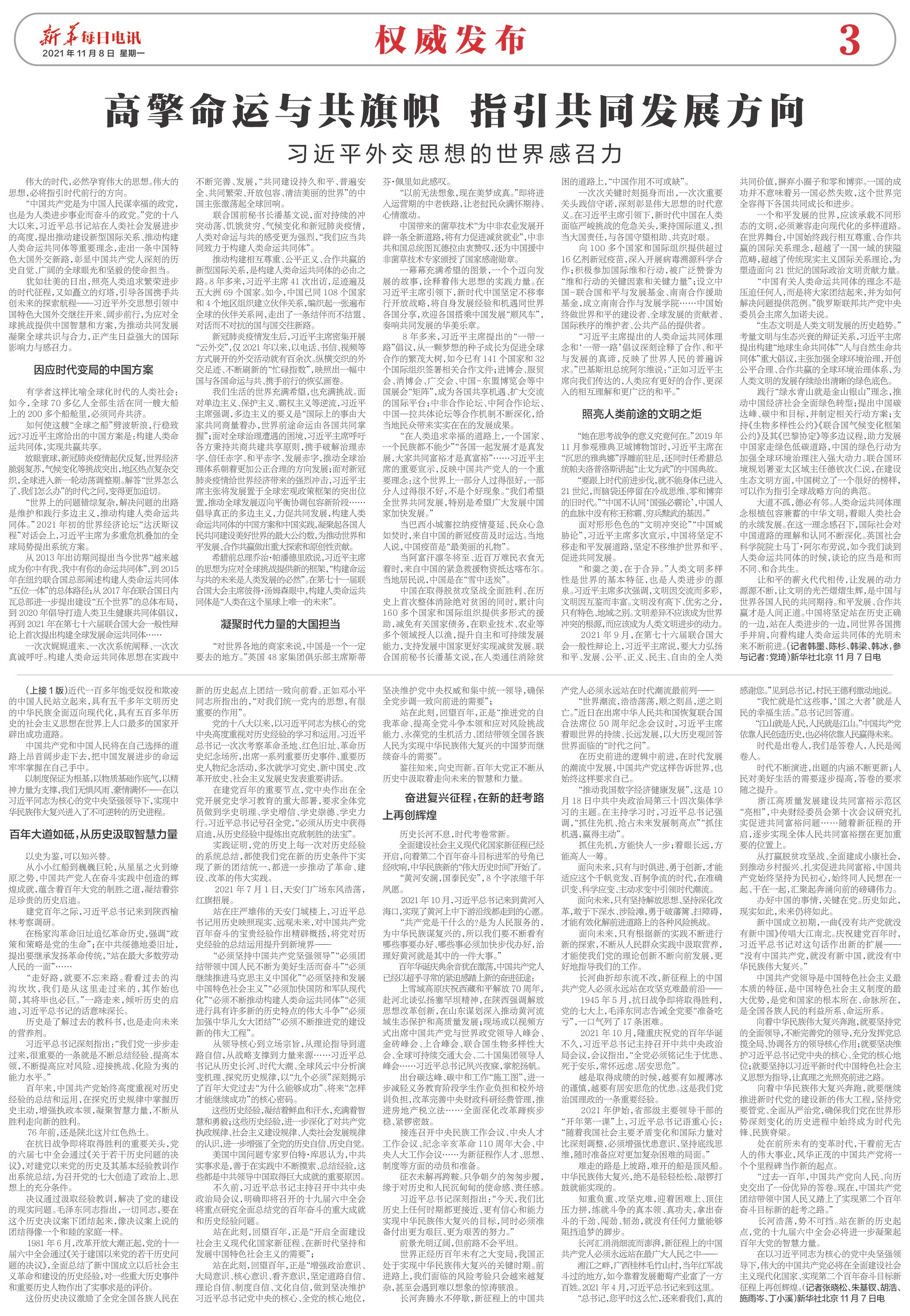 | ( 2021-11-08 ) 稿件来源:新华每日电讯 权威发布 |