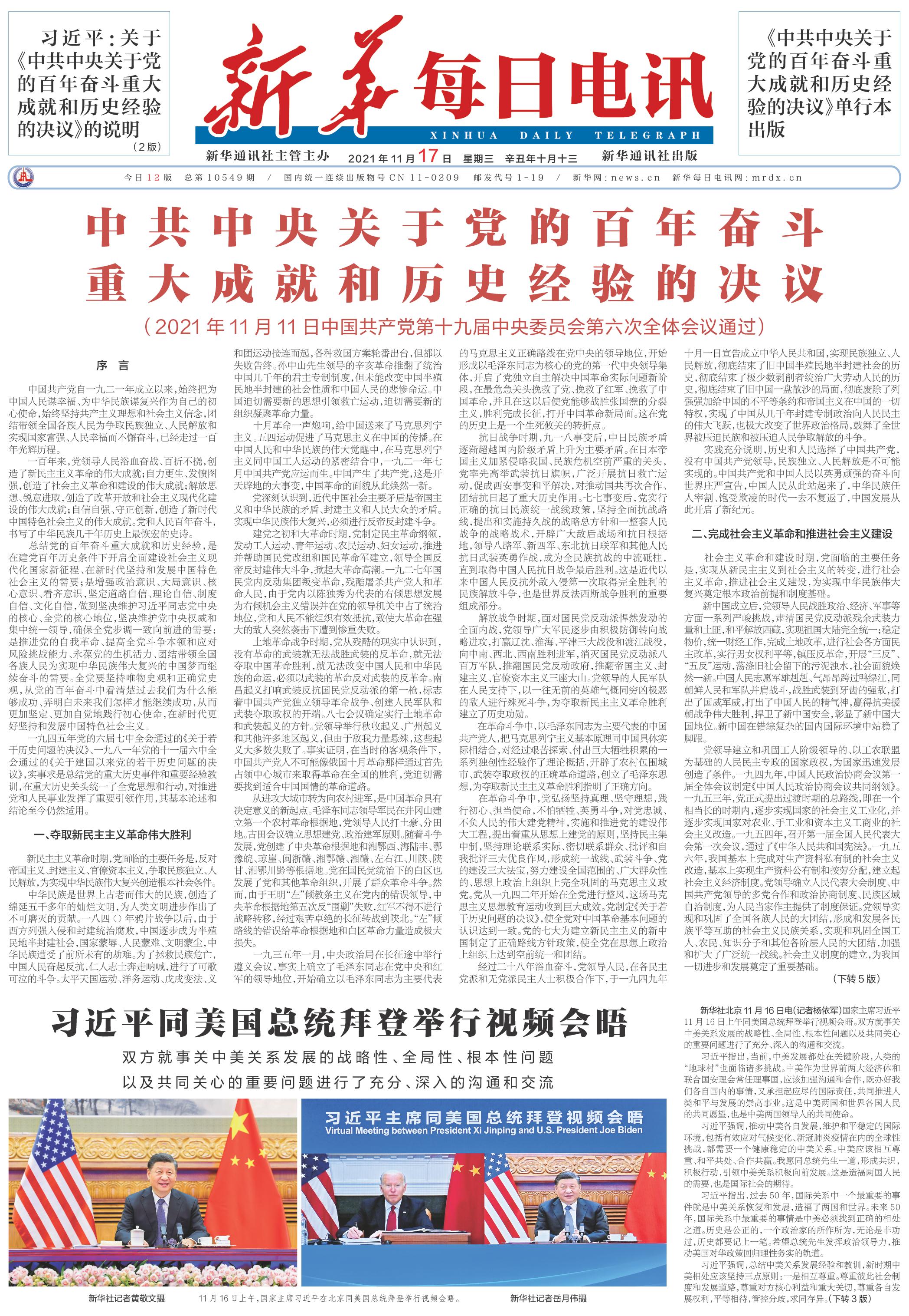 | ( 2021-11-17 ) 稿件来源:新华每日电讯 要 闻 |