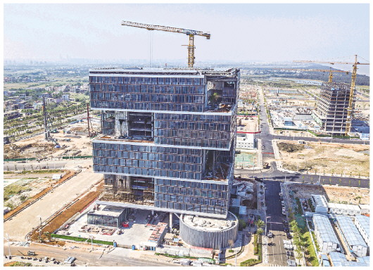 这是11月13日在海口江东新区拍摄的江东国际能源中心项目。日前,在海南自贸港重点园区——海口江东新区,海口金融中心、大唐国际贸易中心、中银国际金融中心、鸿宝集团总部大楼、江东国际能源中心等项目建设有序推进。海口江东新区设立于2018年,是海南自贸港11个重点园区之一。