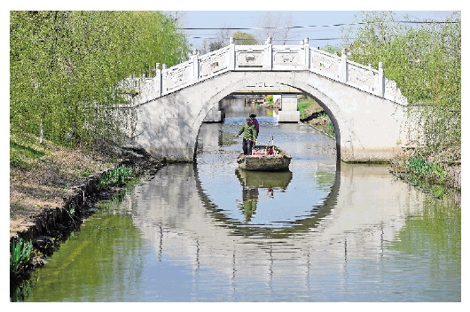 盐城市佳富村村民清洁河道(3月26日摄)。 |