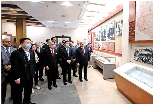 6月3日,阿拉伯国家驻华使节及阿盟驻华代表处代表等在西柏坡纪念馆参观。 新华社记者王晓摄 |