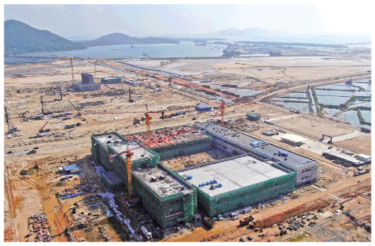 工地灯火通明,货车穿行其间,一座绿色化工和氢能产业园正在茂名滨海新区拔地而起,这里将打造世界级绿色化工和氢能产业基地。作为“链主”企业的东华能源股份有限公司正将其第三代丙烷脱氢装置投放此地,为广东沿海经济带发展提供强大动能。