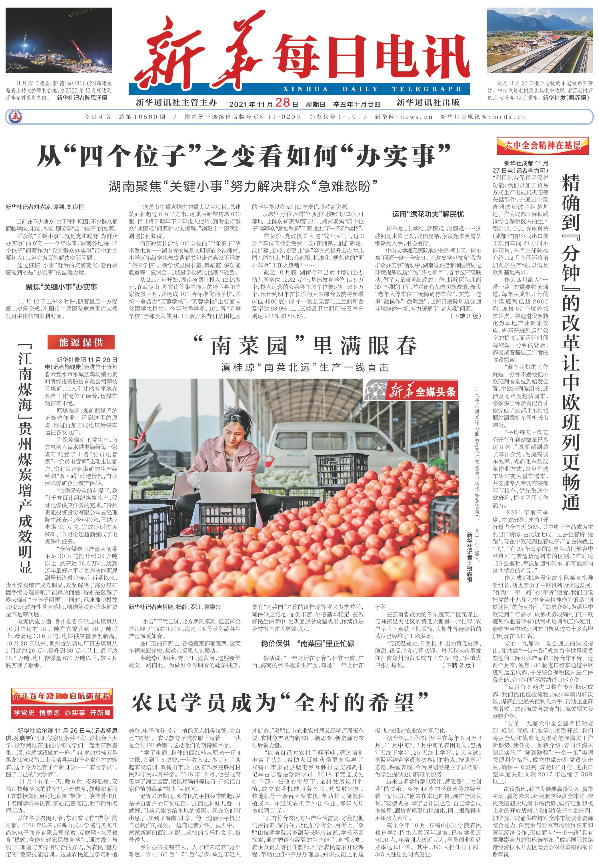 | ( 2021-11-28 ) 稿件来源:新华每日电讯 要 闻 |