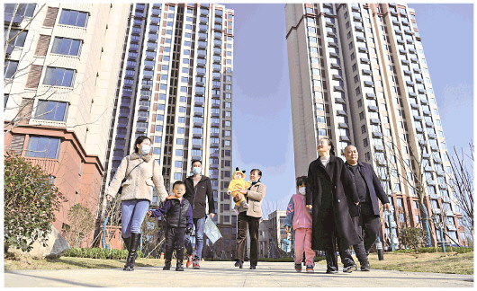 11月28日,肥西县花岗镇回迁居民在回迁安置小区内参观。