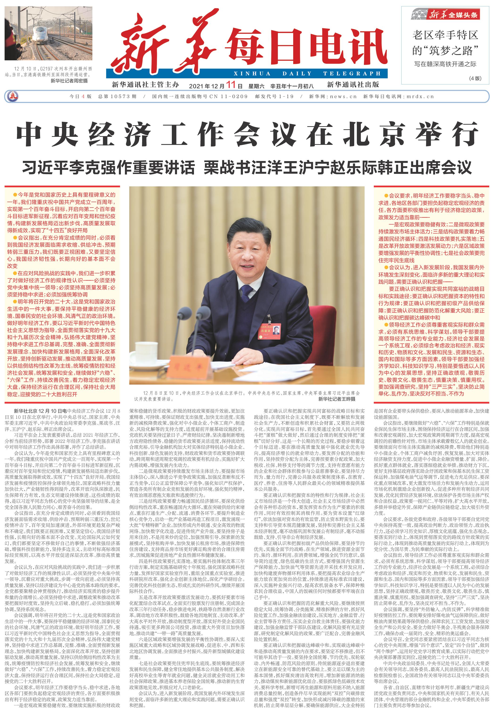 习近平在会上发表重要讲话,总结2021年经济工作,分析当前经济形势,部署2022年经济工作。李克强在讲话中对明年经济工作作出具体部署,并作了总结讲话。