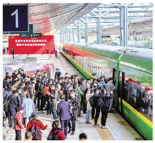 12月3日,乘客在中国昆明站准备搭乘中老铁路首发列车。 新华社记者胡超摄