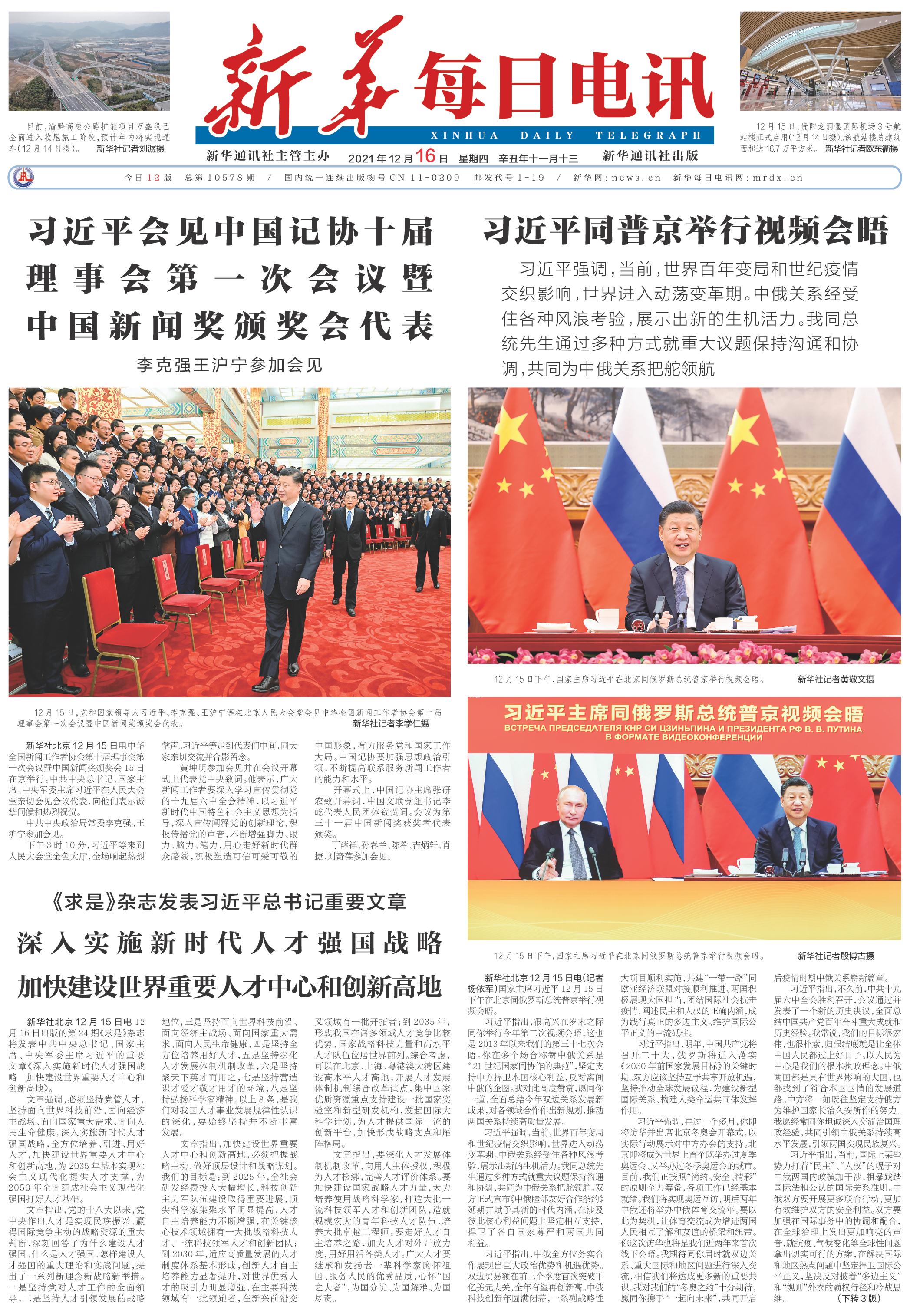 | ( 2021-12-16 ) 稿件来源:新华每日电讯 要 闻 |