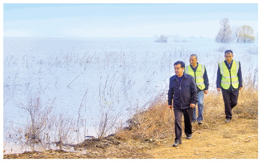 初冬的早晨,密云石城镇王庄村一处通往水库的道路岔口,身着黄色马甲的保水员王加英已经早早赶到这里。不远处,朝阳在宁静的湖面上泛着道道金光。