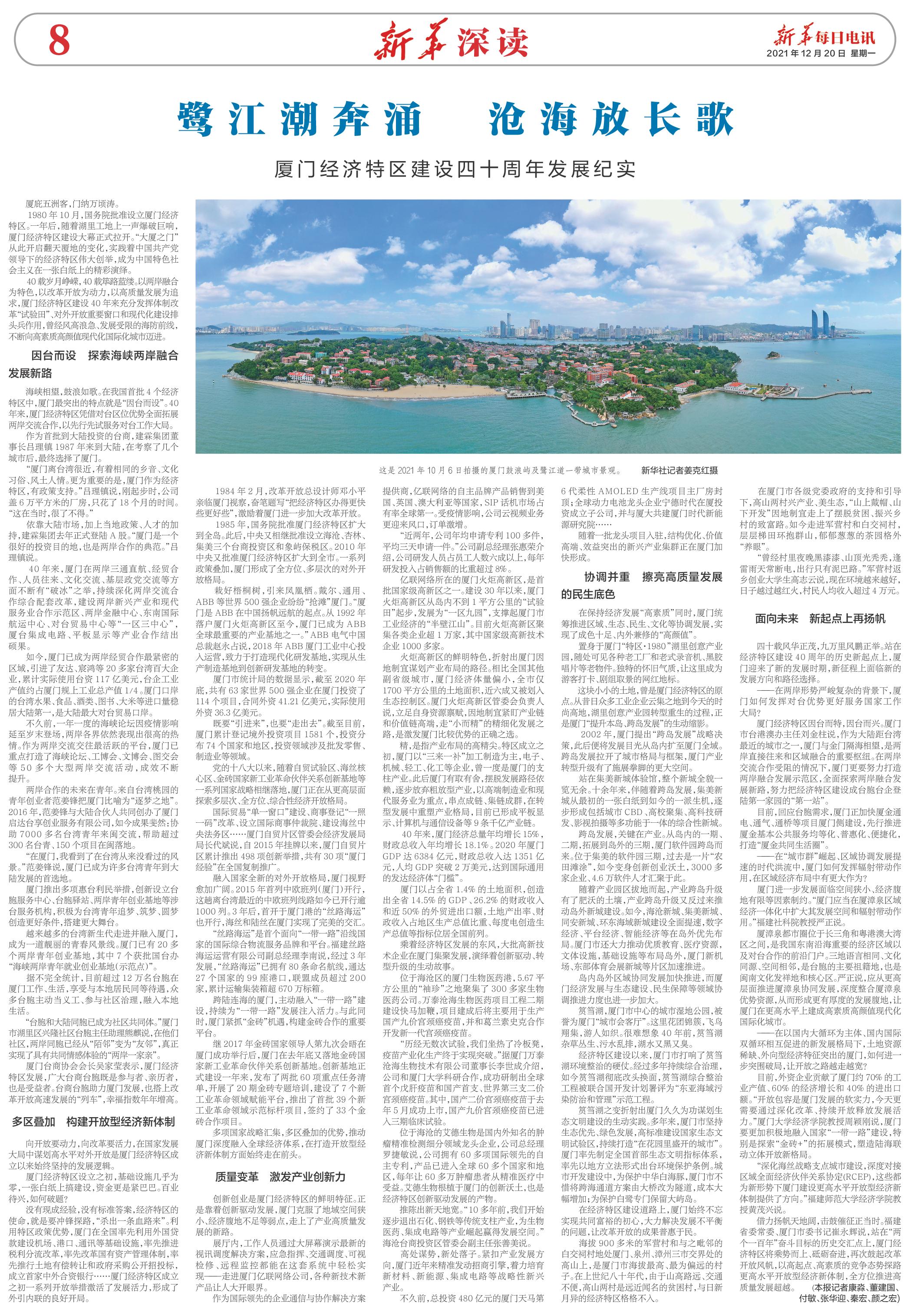 创新创业是厦门经济特区的鲜明特征。正是靠着创新驱动发展,厦门克服了地域空间狭小、经济腹地不足等弱点,走上了产业高质量发展的新路。