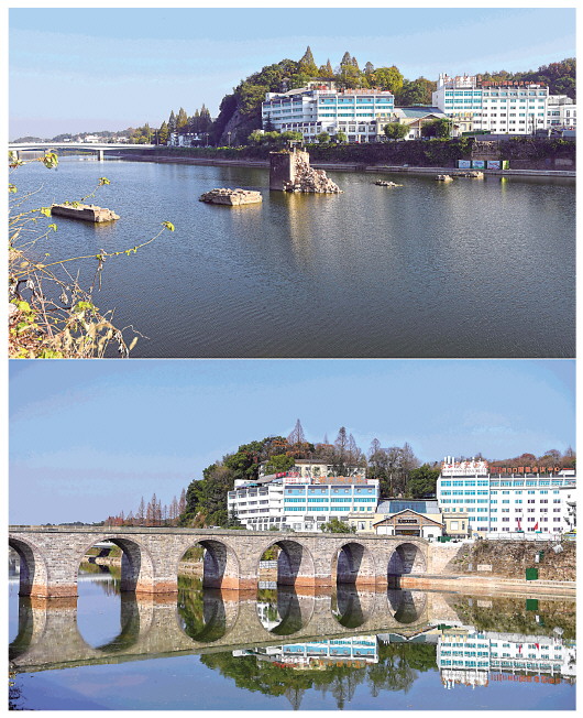 下图:2021年12月21日拍摄的完成修缮后的镇海桥。 新华社记者刘军喜摄 |