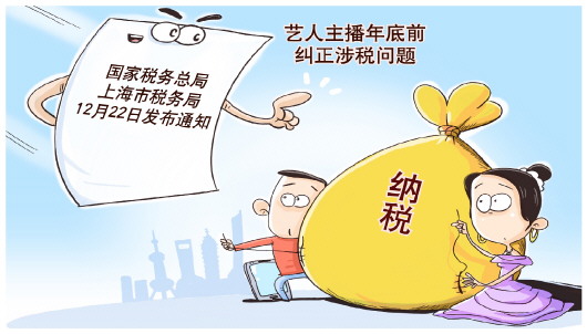 国家税务总局上海市税务局印发通知,要求相关明星艺人、网络主播等,抓紧对照税法及有关通知要求进行自查,并于今年年底前主动报告和纠正涉税问题,税务部门将依通知要求从轻、减轻或者免予税务处罚。对仍拒不自查自纠或者自查自纠不彻底的,将依法依规严肃处理。