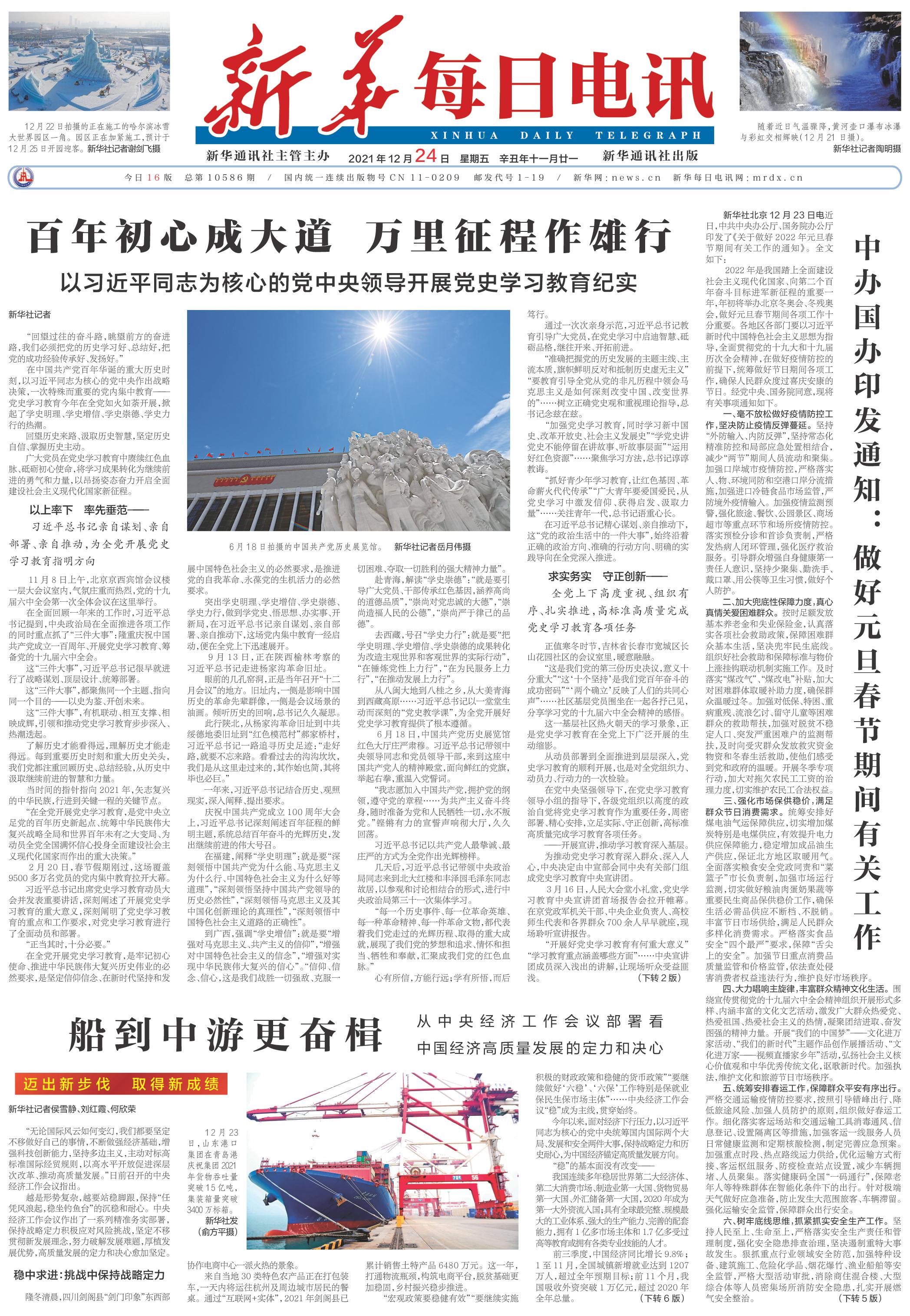 历史照亮未来,奋斗成就伟业。一次次从历史中汲取智慧和勇气,一次次从胜利走向新的胜利的中国共产党和中国人民,必将在新时代新征程上赢得更加伟大的胜利和荣光。(记者朱基钗、王子铭、黄玥、刘硕、熊丰)新华社北京12月23日电