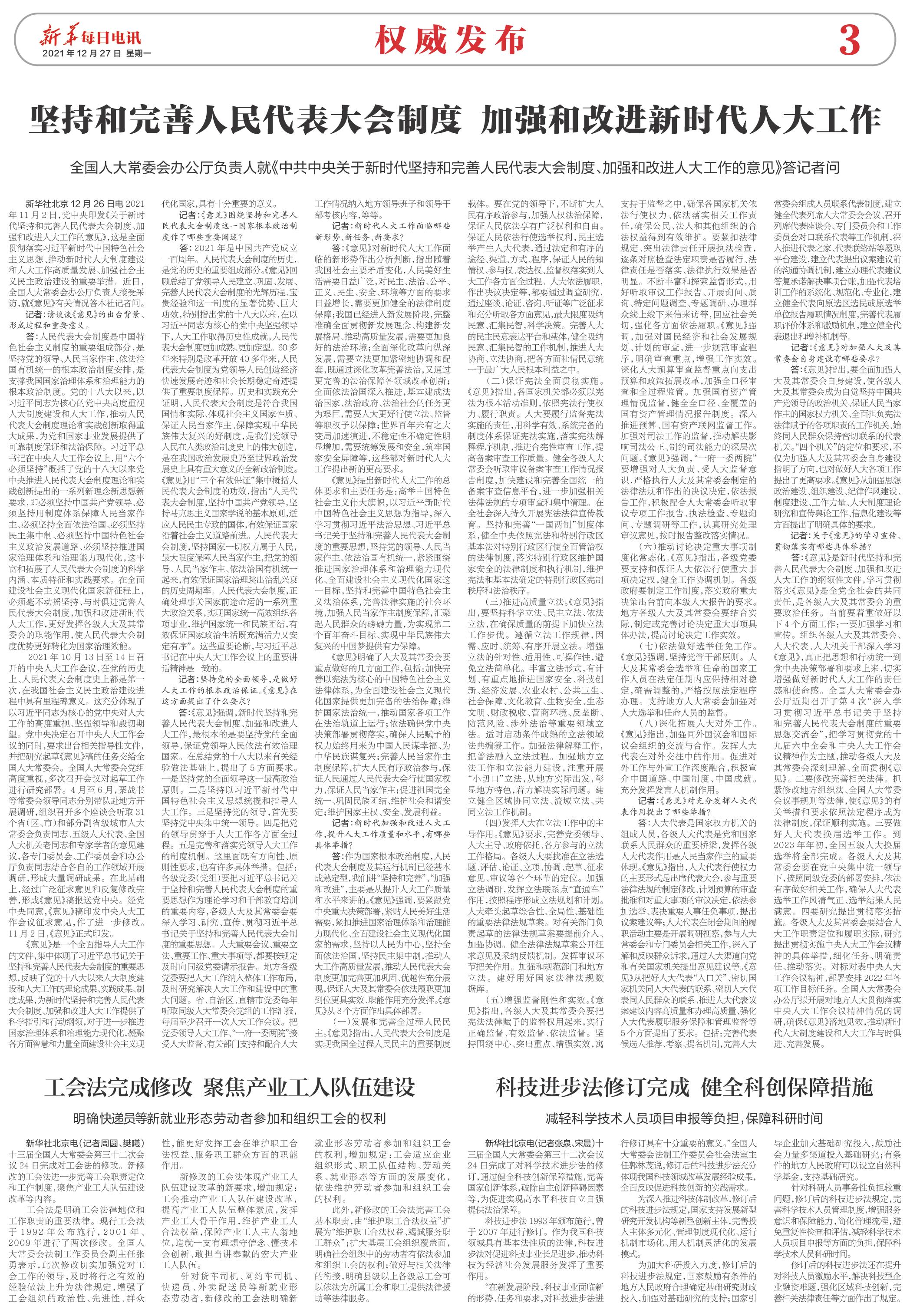 | ( 2021-12-27 ) 稿件来源:新华每日电讯 权威发布 |
