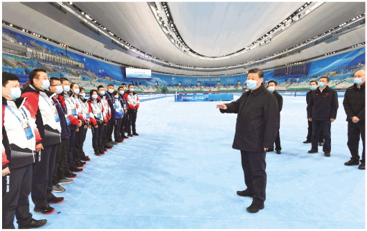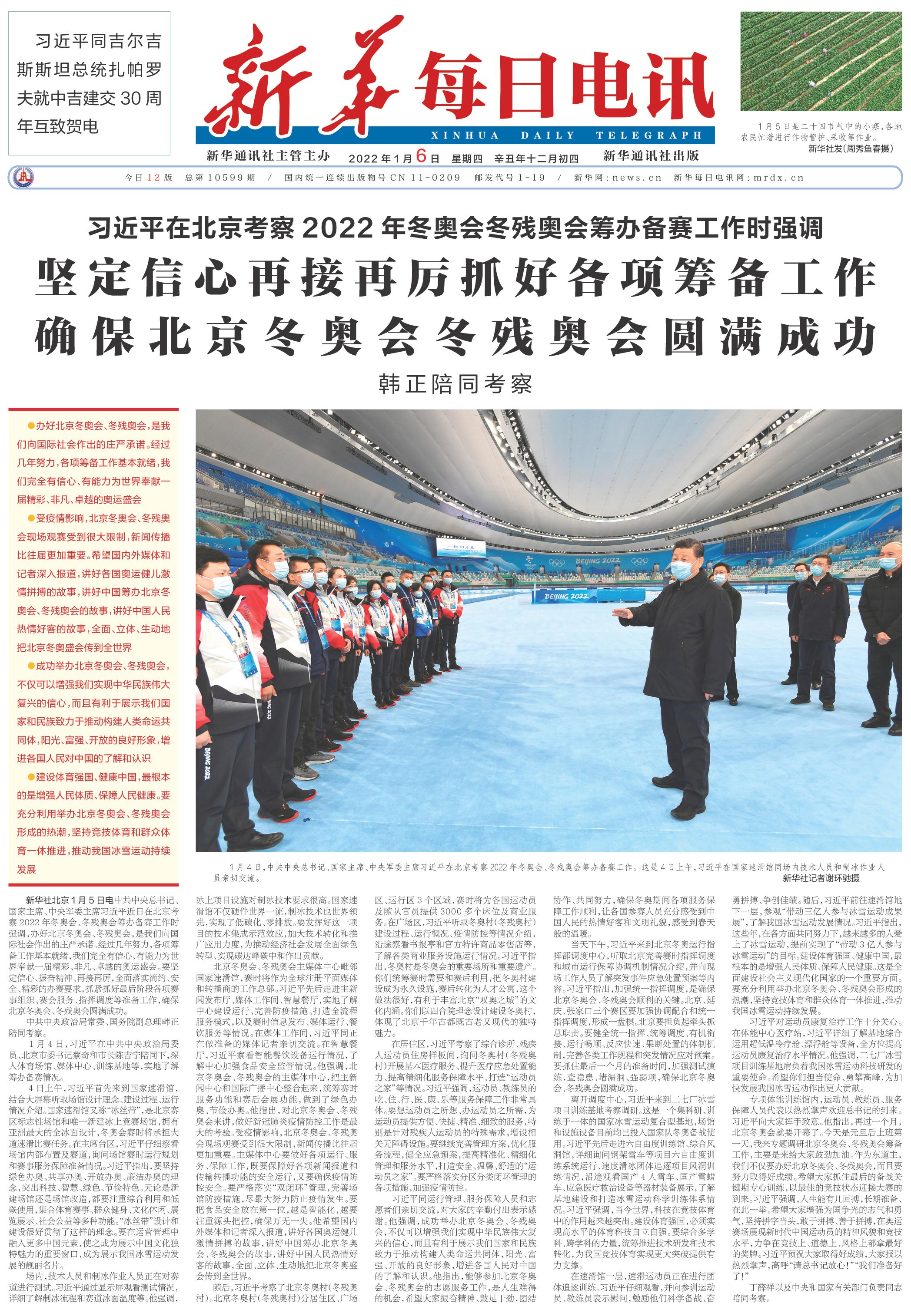 1月4日,习近平在中共中央政治局委员、北京市委书记蔡奇和市长陈吉宁陪同下,深入体育场馆、媒体中心、训练基地等,实地了解筹办备赛情况。