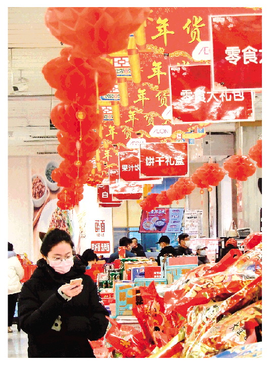 1月5日,市民在北京市朝阳区一家超市选购商品。春节临近,北京市各大商场超市内张灯结彩年味渐浓。 新华社记者李欣摄
