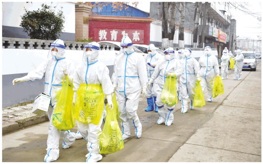 说话间,66名来自长安区黄良街道和滦镇街道的医护人员抵达周家庄村,他们的防护服上紧贴着一个黄色塑料袋和一个自制采样收集箱。“今天是上门检测,身上一个箱放采样,一个袋放医疗废弃物,贴在身上牢靠又方便。”来自黄良街道的医护人员杨佩莹说道。