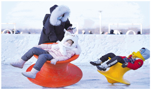 时下正值严冬时节,松花江哈尔滨段的江面冰封雪覆。为方便市民游客亲近冰雪,部分江面已被打造成冰雪娱乐区域,让市民游客体验冰雪娱乐项目,尽享冰雪之乐。